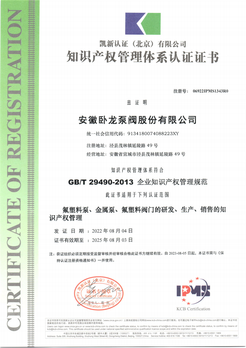 安徽臥龍泵閥現已取得二項發明專利,二十多項實用新型專利每年都有近十多個的新產品投入市場